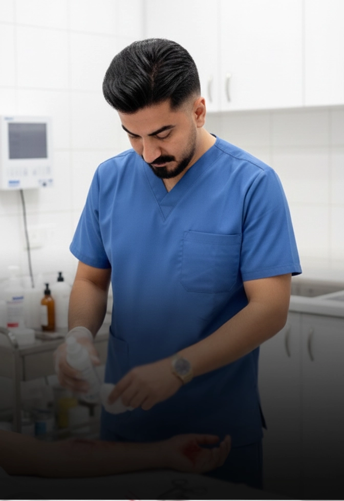در کلینیک ما، هر زخم با دقت و حساسیت بررسی شده و برنامه درمانی اختصاصی برای هر بیمار طراحی میشود. هدف ما تنها درمان نیست؛ بلکه ارتقاء کیفیت زندگی و بازگشت سریع شما به فعالیتهای روزمره است.